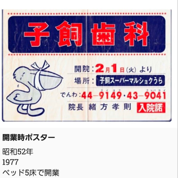 子飼歯科医院は、昭和52年サンリブ子飼店隣 緒方(知則)医院の隣接地に有床歯科医院として
